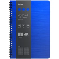 Бизнес-тетрадь A5+, 80л., Berlingo "Steel&Style", клетка, на гребне, 80г/м2, пластик (полифом) обложка, линейка-закладка, синяя