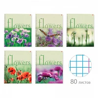 Тетрадь А5 80л. АЛЬТ гребень, клетка, глянцевая ламинация, Цветы (5 видов), 7-80-856