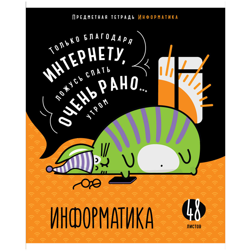 етрадь предметная «Информатика» из серии "Мысли вслух" (в серии 12 предметов), со справочным материалом на обложке. Формат А5, размер – 165*205 мм. Вид крепления – скрепка. Внутренний блок состоит из 48 листов офсетной бумаги плотностью 60 г/м?. Белизна 92%, линовка – клетка с полями. Обложка выполнена из мелованной бумаги с отделкой ВД-лаком.