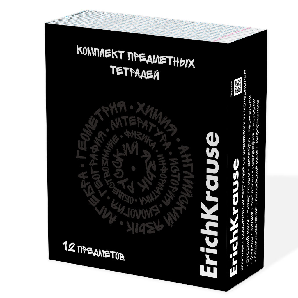 Комплект тетрадей общих ученических ErichKrause Noir, 48 листов, клетка/линейка, со справочным материалом (обечайка 12 штук)