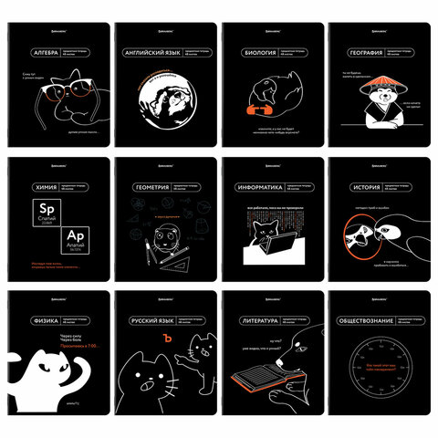 Тетради предметные, КОМПЛЕКТ 12 ПРЕДМЕТОВ, 48 л., TWIN лак, BRAUBERG "МЕМЫ", 405172