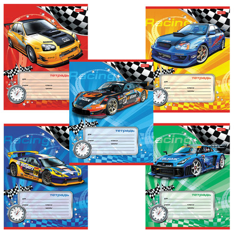 Тетрадь 12 л., HATBER, косая линия, обложка картон, "Спортивные авто" (5 видов в спайке), 12Т5В6