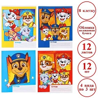 Комплект тетрадей из 12 штук "Щенячий патруль", 12 листов, в клетку, обложка бумага мелован.