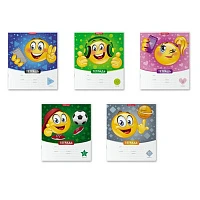 Тетрадь 12 листов в клетку Calligrata "Смайлики", обложка мелованный картон, ВД-лак, блок офсет, белизна 92%, МИКС