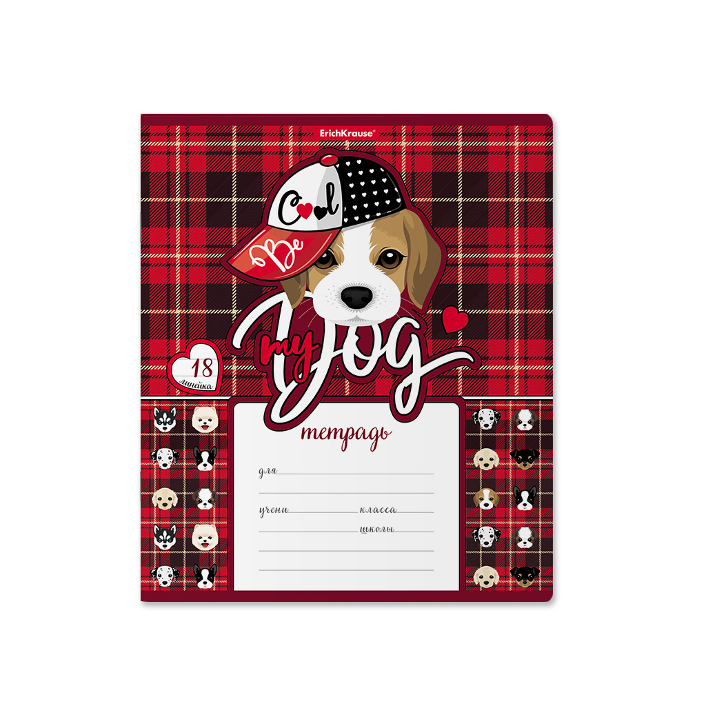 Тетрадь школьная ученическая ErichKrause Cute Dog, 18 листов, линейка (в плёнке по 10 штук)
