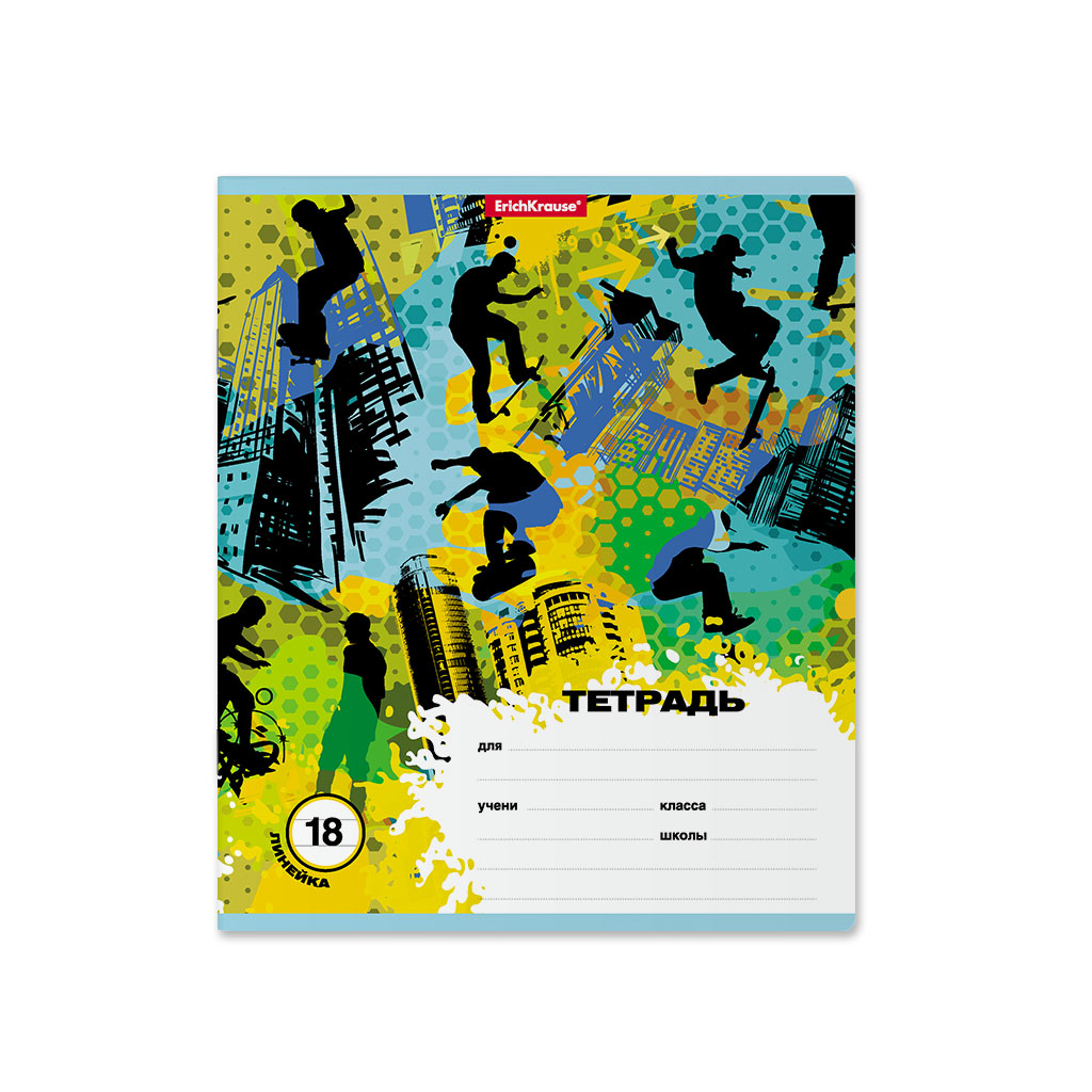 Тетрадь школьная ученическая ErichKrause Skateboarder, 18 листов, линейка (в плёнке по 10 штук)