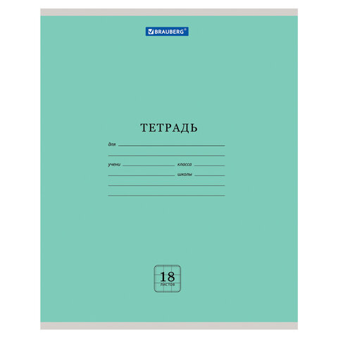 Тетрадь 18 л. BRAUBERG "ЭКО", клетка, обложка плотная мелованная бумага, ЗЕЛЕНАЯ ПАСТЕЛЬНАЯ, 105675