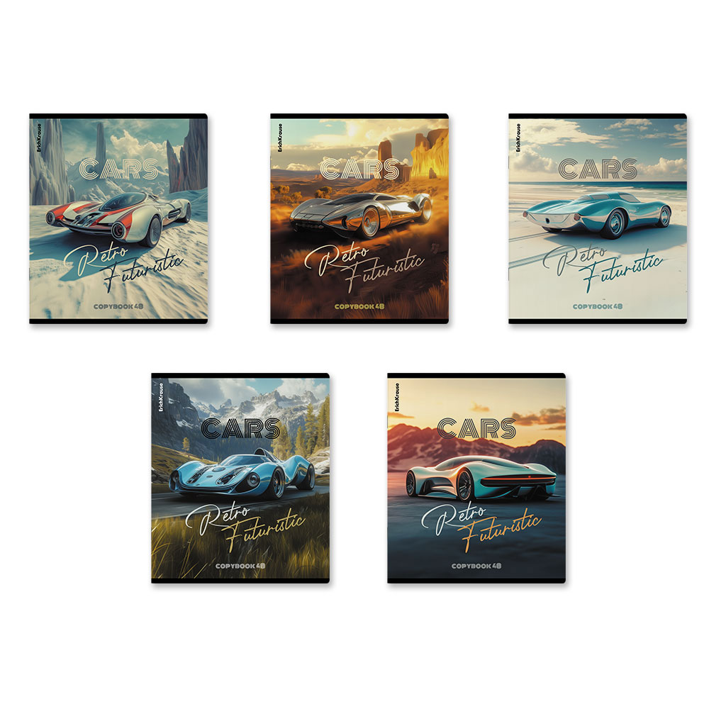 Тетрадь общая ученическая ErichKrause Retro Cars, 48 листов, клетка, матовая ламинация MIX-PACK