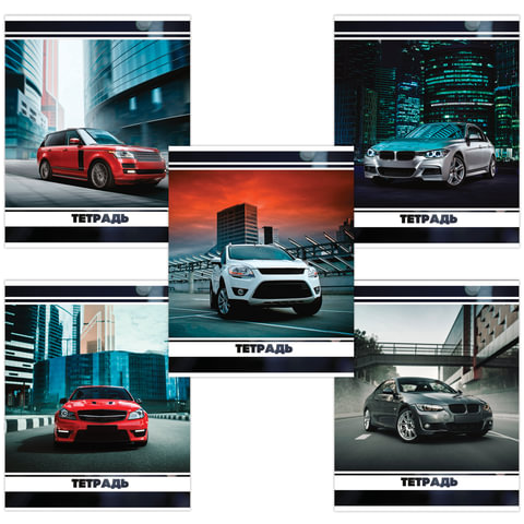 Тетрадь А5, 48 л., BRAUBERG, клетка, обложка картон, МАШИНЫ, 403038