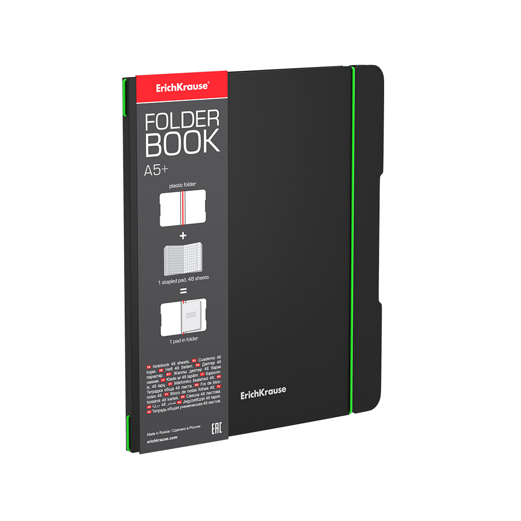 Тетрадь общая ученическая в съемной пластиковой обложке Erich Krause FolderBook Accent, зеленый, А5+, 48 листов, клетка