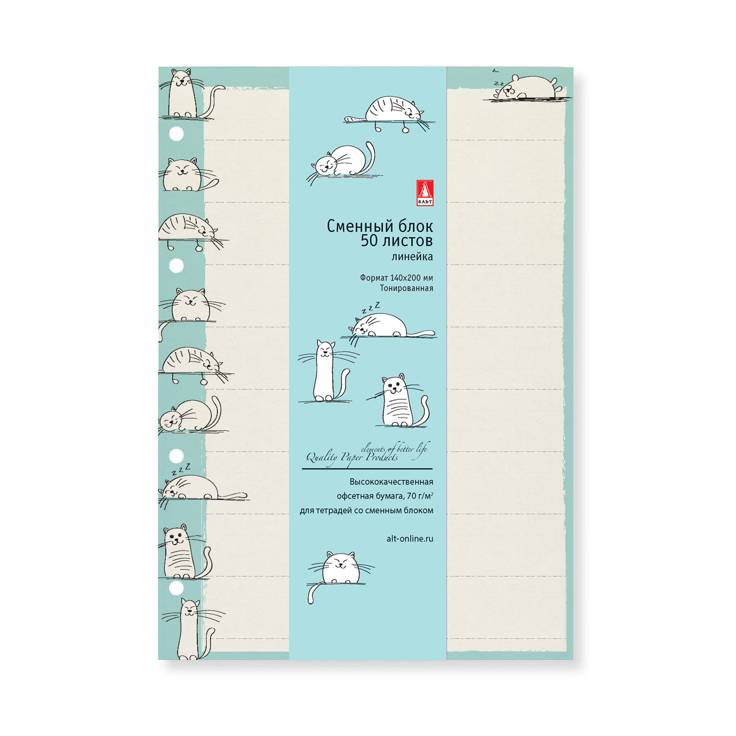СМЕННЫЕ БЛОКИ ДЛЯ ТЕТР. НА КОЛЬЦАХ А5, 50 Л.(БЕЖЕВЫЙ), ДОВОЛЬНЫЕ КОТЫ, линейка