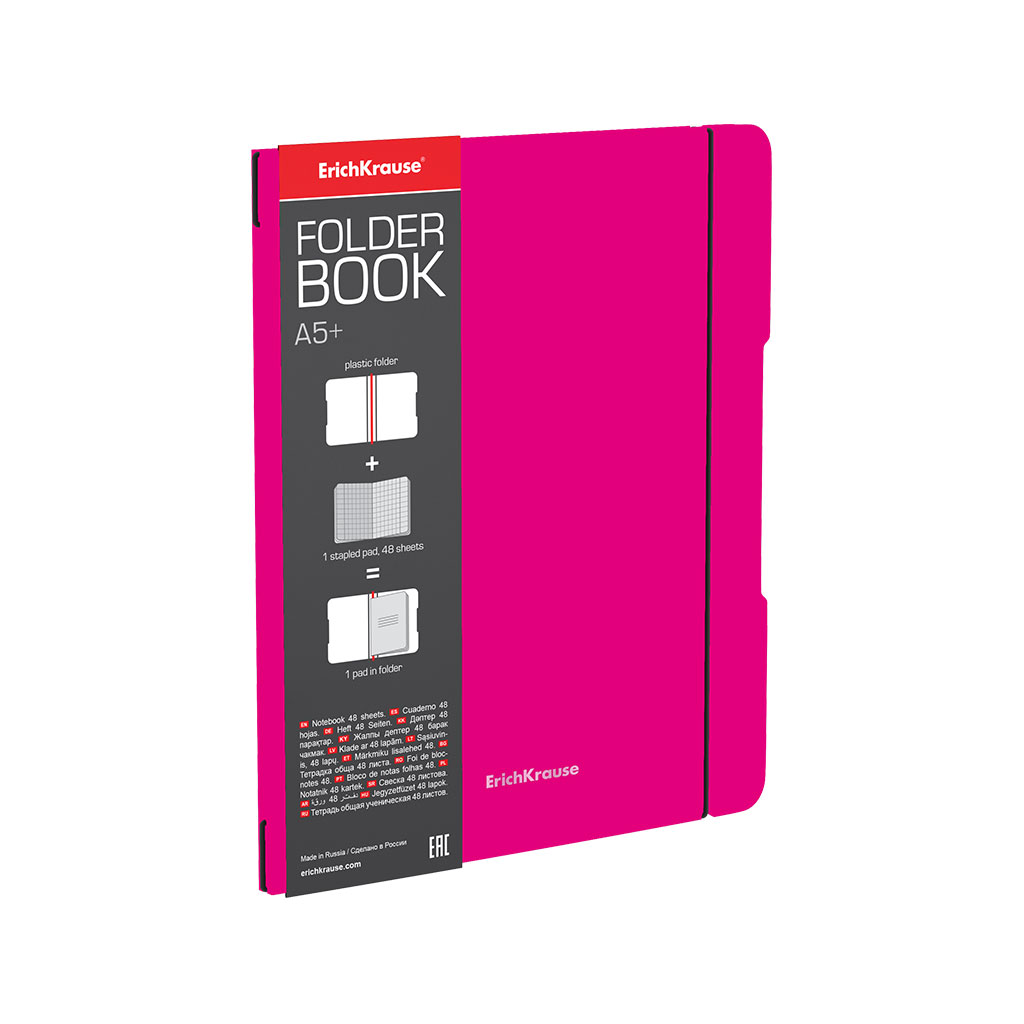 Тетрадь общая ученическая в съемной пластиковой обложке ErichKrause® FolderBook Neon, розовый, А5+, 48 листов, клетка