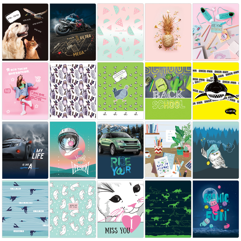 Тетрадь BG серии «Super Mix-20» в линию. Формат А5. Вид крепления – скрепка. Внутренний блок – это 48 листов, офсетная бумага плотностью 60 г/м2. Обложка выполнена из мелованного картона . В наборе 20 тетрадей с креативными дизайнами, которые отлично подходят для выполнения классных и домашних работ. • Кол-во листов: 48 л, • Линовка: клетка, • Белизна: 100%, • Плотность блока: 60 г/м2, • Крепление: скрепка, • Материал обложки: мелованный картон.