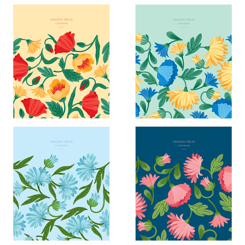 ВНИМАНИЕ: БОЛЬШИНСТВО ЭЛЕМЕНТОВ В НАБОРЕ МОГУТ ИМЕТЬ ОДИНАКОВЫЙ ДИЗАЙН. Тетрадь общая ArtSpace "Цветы. Amazing ideas" формата А5 (165*205) на скобе состоит из 48 листов. Внутренний блок - это офсетная бумага плотностью 60-65 г/м, белизна - 100%, линовка – клетка с полями. Обложка тетради изготовлена из мелованного картона. • Количество листов: 48; • Линовка: клетка с полями; • Формат тетради: А5(165*205); • Белизна: 100%; • Крепление: скрепка; • Материал обложки: мелованный картон