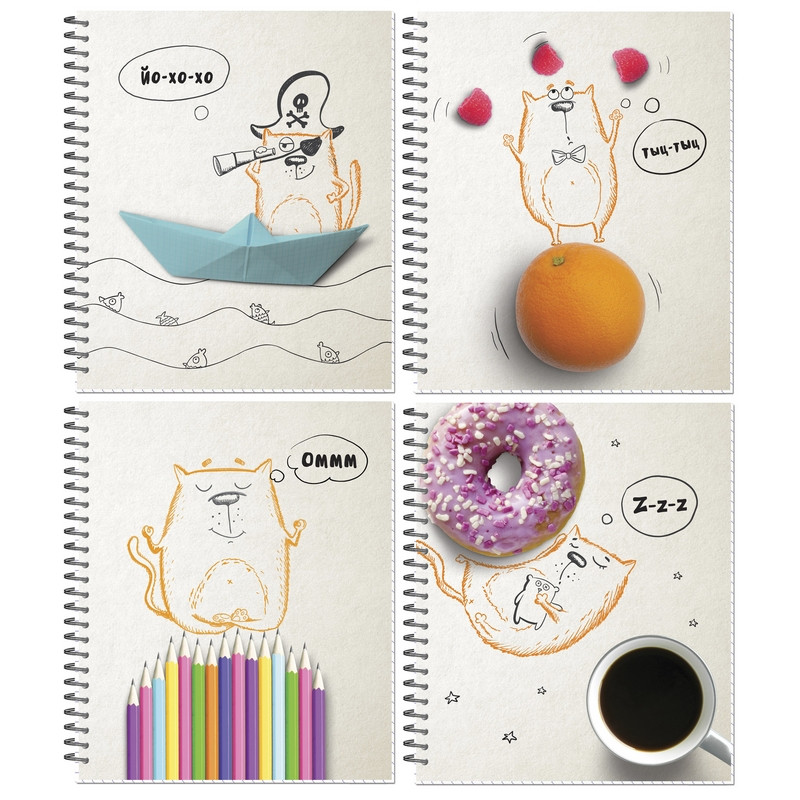 Тетрадь общая А5,60л,клетка,греб,обл.карт+ВДлак Жил-был Кот 2508-60