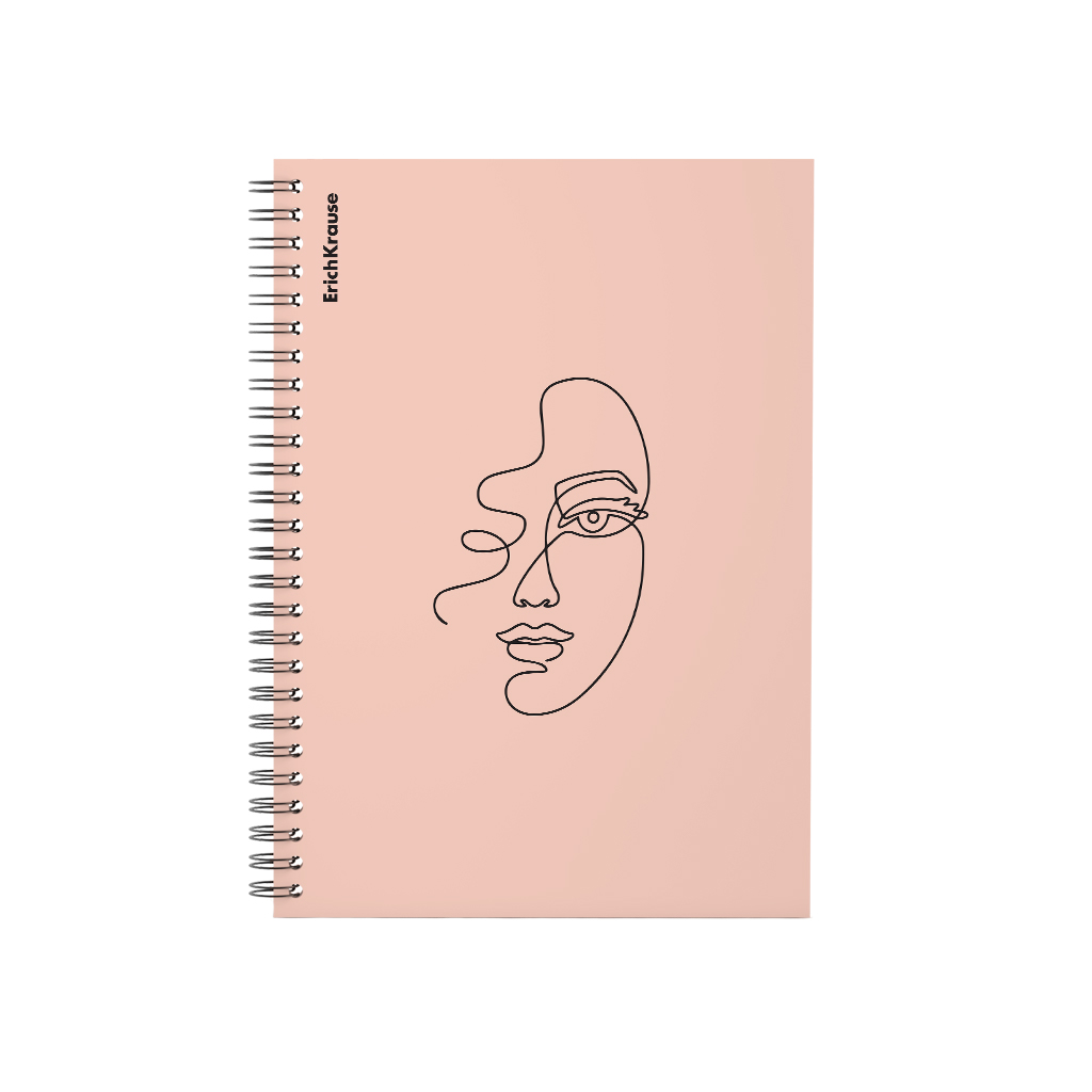 Тетрадь общая с пластиковой обложкой на спирали ErichKrause Powder, Faces, персиковый, А5, 80 листов, клетка