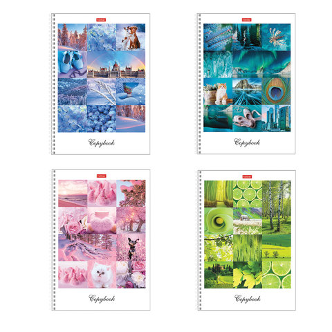 Тетрадь А4, 80 л., HATBER, гребень, клетка, сплошной лак, цветной срез, "Краски дня" (4 вида), 80Т4В1гр