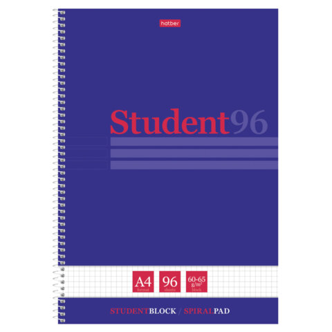 Тетрадь А4 96 л., HATBER, спираль, клетка, матовая ламинация, тиснение, "Студенту_Синяя", 081327, 96Т4лтВ1сп29868