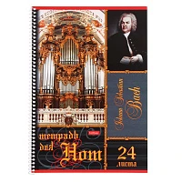 Тетрадь для нот А4, 24 листа "БАХ", со справочной информацией, обложка мелованный картон, блок офсет