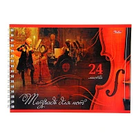 Тетрадь для нот А5, 24 листа на скрепке, горизонтальная