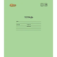 Тетрадь ЗЕЛЁНАЯ обложка 18 листов HATBER, офсет, клетка с полями, 18Т5D, T58060