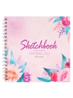 Скетчбук Цветы 160х160, мел картон, лён+мат лам, гребень слева, жест подл., 40л, 78г (крафт блок) С40-4827