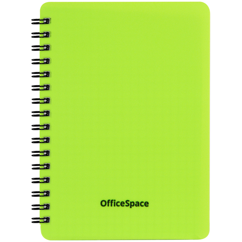Записная книжка А6 60л. на гребне OfficeSpace "Neon", салатовая пластиковая обложка