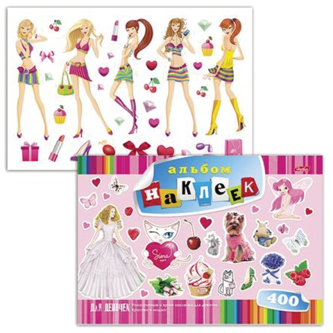Альбом наклеек, А4, 12 л., HATBER, 400 наклеек, "Для девочек", 12Ан4 12638, O162279