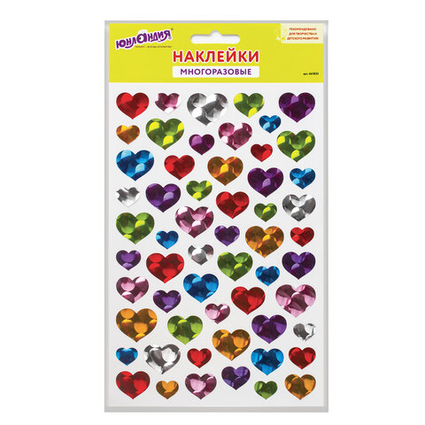 Наклейки виниловые "Сердца", голографические, 14х21 см, ЮНЛАНДИЯ, 661833