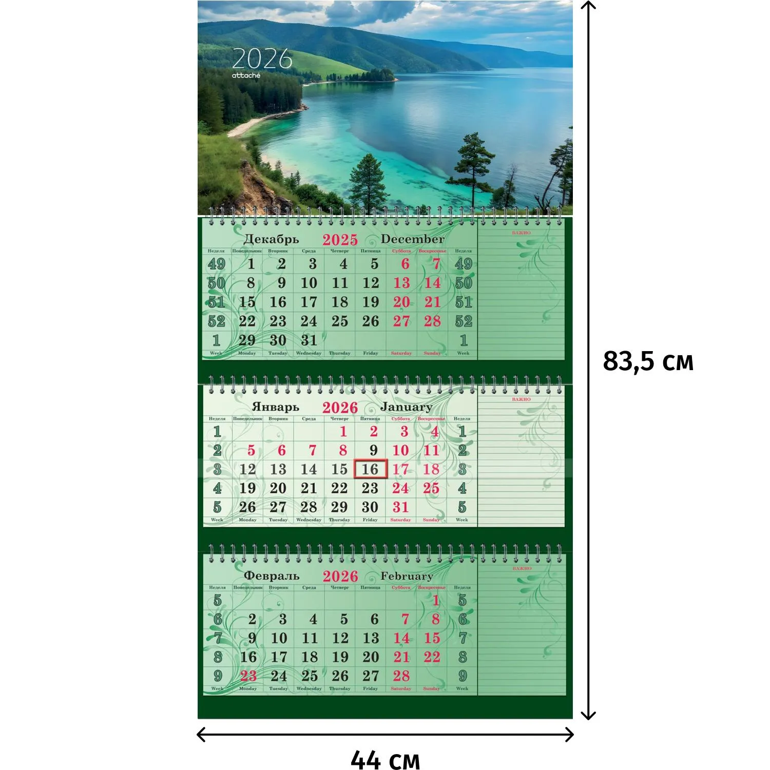 Календарь настенный 3-х блочный 2026 Attache, Супер-Прем+блок, Байкал, 440х835