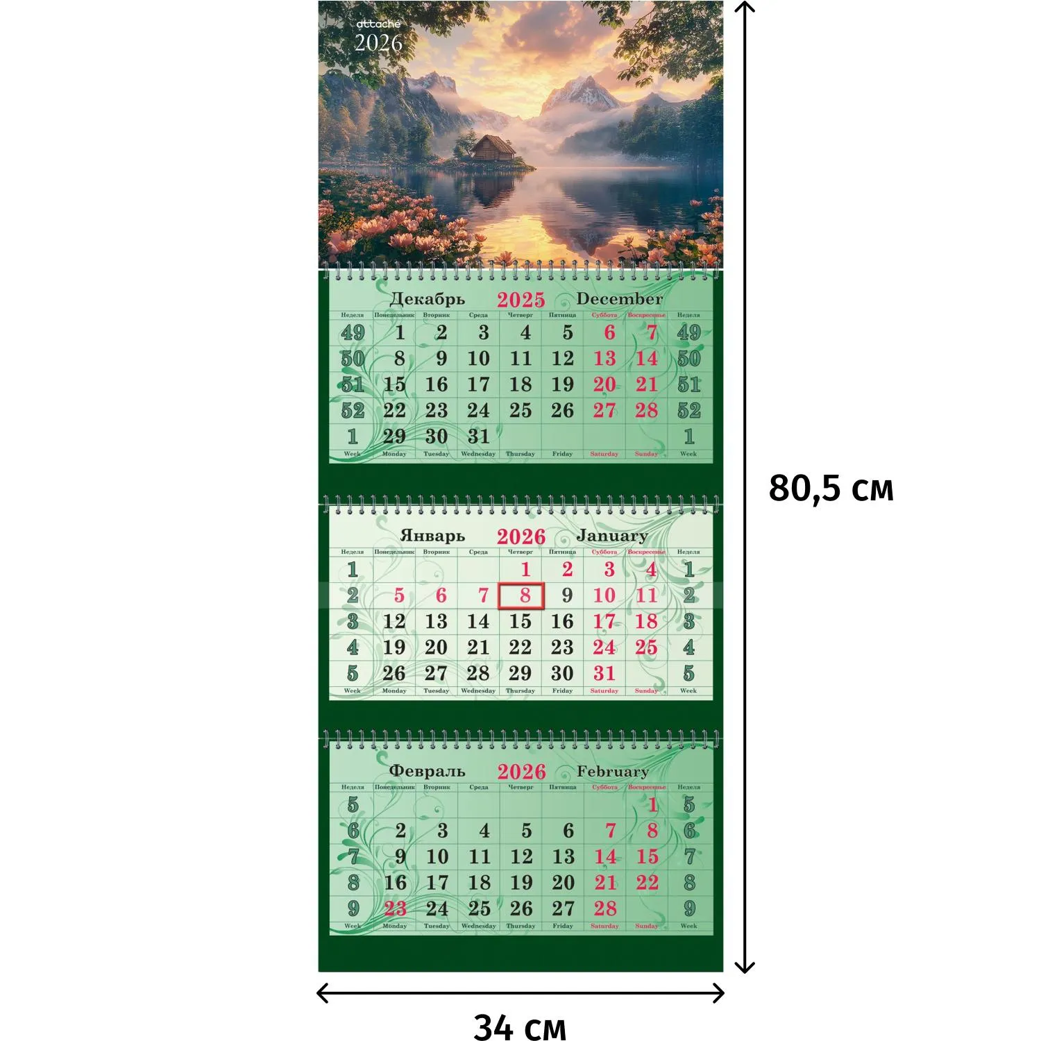 Календарь настенный 3-х блочный 2026 Супер-Премиум, Горнре озеро,100г,340х805