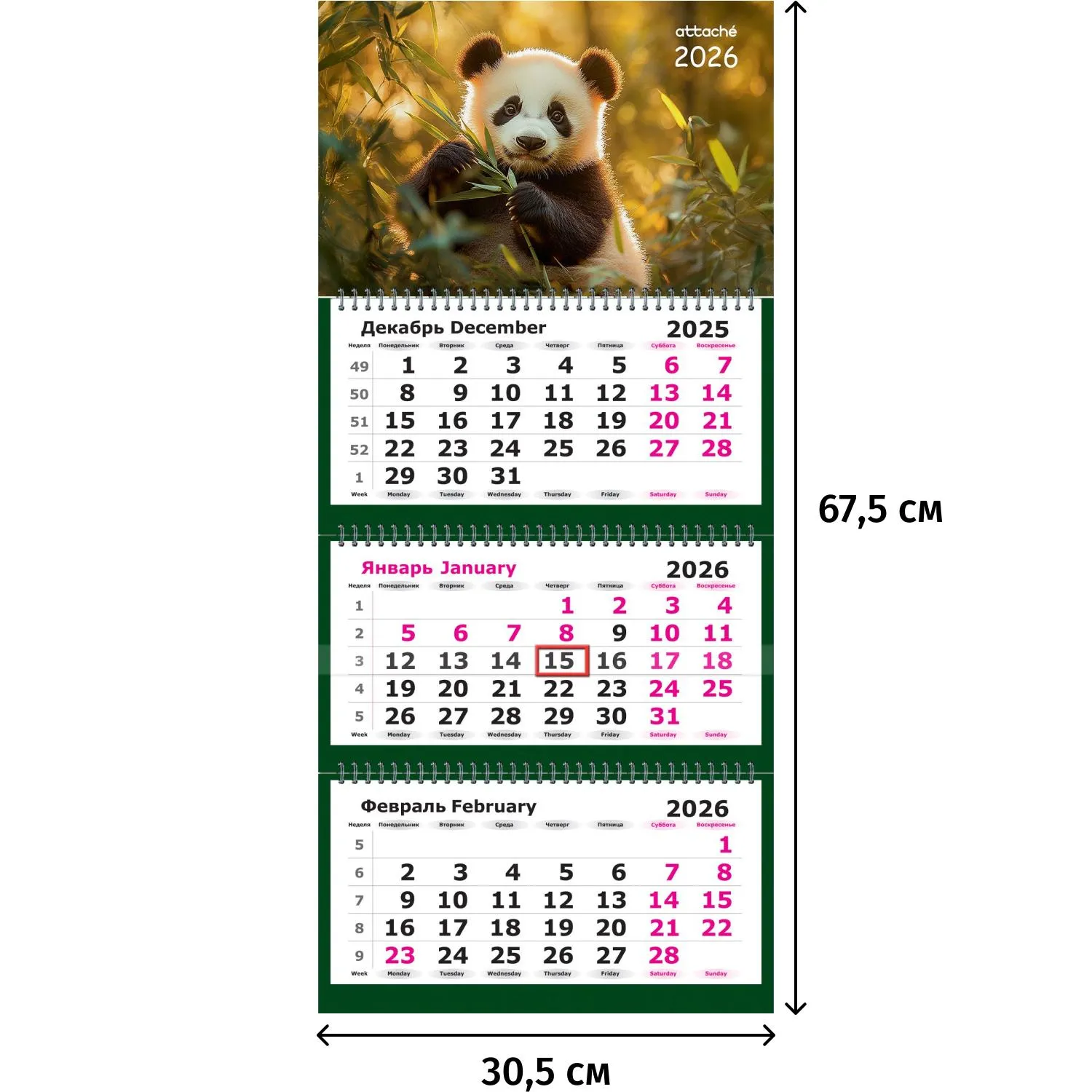 Календарь настенный 3-х блочный 2026 Трио Стандарт, 305х675, Панда, 80г/м2
