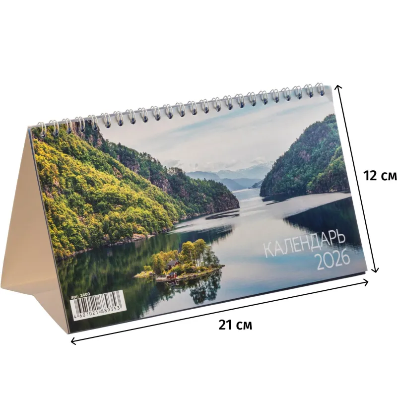 Календарь-домик настольный 2026, Горы и водопады,спир,14л,115г,210х120,2400