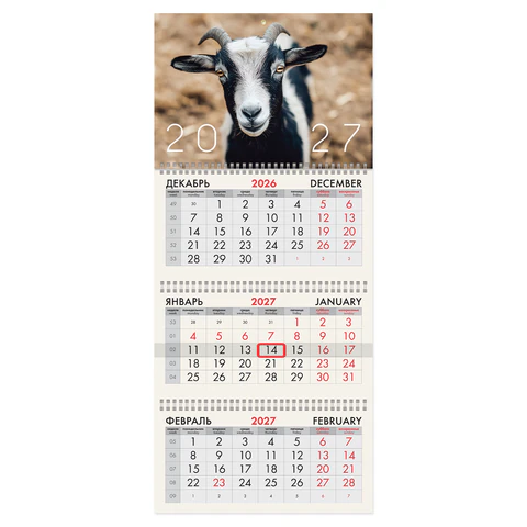 Квартальный календарь BRAUBERG "Символ года" предназначен для делового планирования. Офисный календарь на 2027 год на 3 гребнях. Состоит из 3 блоков с календарными сетками на три месяца – предыдущий, текущий и последующий. Блок календаря напечатан на офсетной бумаге плотностью 65 г/м2. Подложка изготовлена из мелованного картона плотностью 235 г/м2. Курсор-бегунок выделяет текущую дату. Вертикальный формат.Размер – 29,5х68,2 см. Поставляется в индивидуальной упаковке (полибег) с европодвесом и прокладкой из гофрокартона, что обеспечивает дополнительную защиту товара.