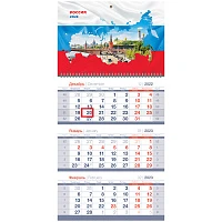 Календарь квартальный на 2023 г., 3 блока, 3 гребня, с бегунком, мелованная бумага, "РОССИЯ", BRAUBERG, 114266