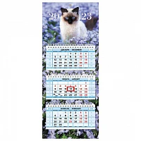 Календарь квартальный с бегунком 2023 г., 3 блока, 3 гребня, ОФИС, "Котенок", HATBER, 3Кв3гр3_11865