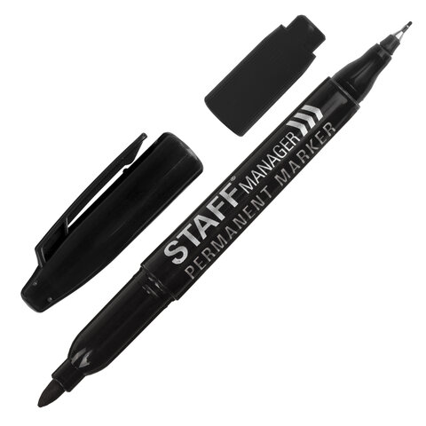 Маркер перманентный двусторонний STAFF "Manager", ЧЕРНЫЙ, наконечники 0,8 мм / 2,2 мм, 151625