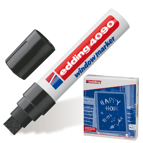 Маркер меловой EDDING "4090", 4-15 мм, ЧЕРНЫЙ, влагостираемый, для гладких поверхностей, Е-4090/1