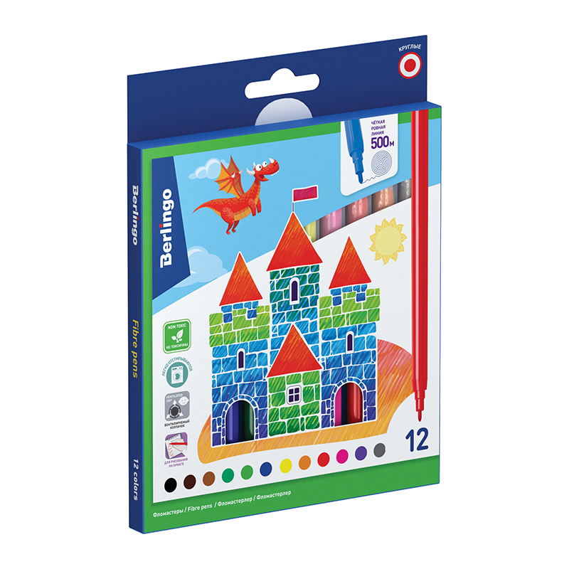 Фломастеры Berlingo "Замки", 12цв., смываемые, картон, европодвес