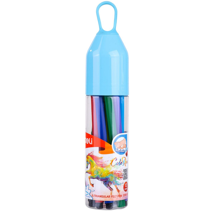 Фломастеры набор Deli ColoRun трехгранные, вентилируемые, смываемые, 12 цветов, пластик.туба