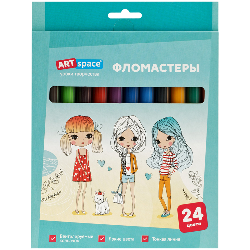 Фломастеры ArtSpace "Модницы", 24 цвета, смываемые, картон, европодвес