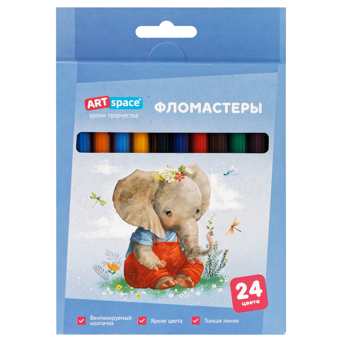 Фломастеры ArtSpace "Рисунки. Lovely animals", 24 цвета, смываемые, картон, европодвес