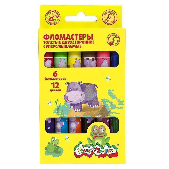 Фломастеры толстые двухсторонние Каляка-Маляка 6 шт. 12 цв.