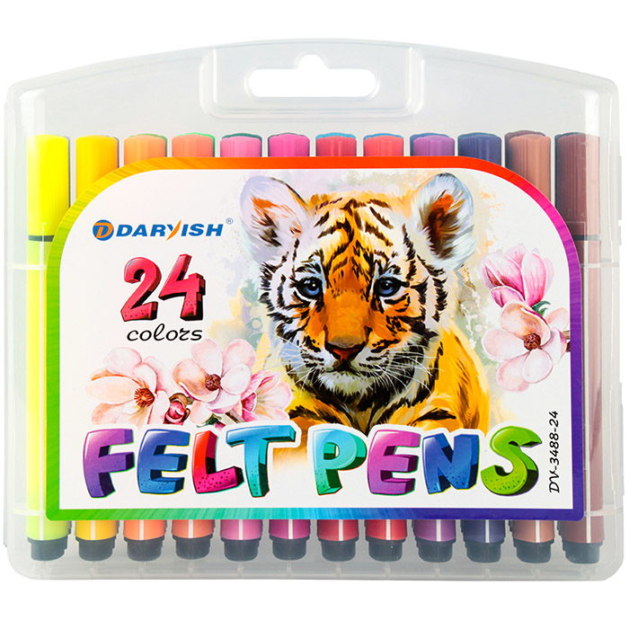 Фломастеры 24цв "Darvish" в пенале треугольные толстые (набор)