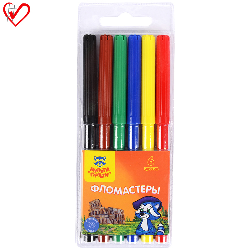 Фломастеры Мульти-Пульти "Енот в Италии", 06цв., смываемые, блистер