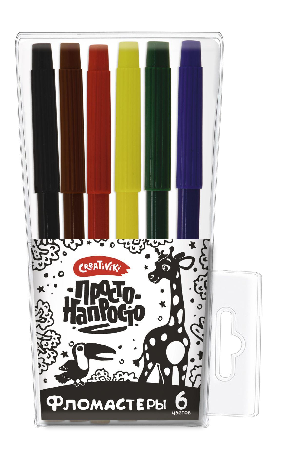 Фломастеры Creativiki ПРОСТО классические 6 цв. кругл. корп. стандартные круглая блист. упак.