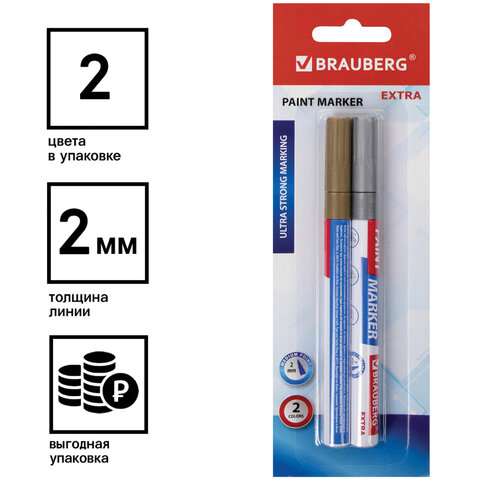 Маркер-краска лаковый EXTRA (paint marker) 2 мм, НАБОР 2 цвета, ЗОЛОТОЙ/СЕРЕБРЯНЫЙ, BRAUBERG, 151992