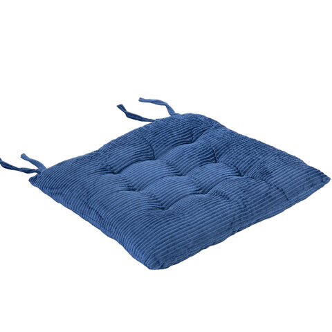 Подушка на стул PRIMILA – возможность не только сохранить первоначальный внешний вид сиденья для стула, но и сделать его более комфортным и стильным. Подходит для любых стульев: кухонных, офисных, садовых. • Характеристики:- размер: 38х38 см.- цвет: синий.- чехол: 100% полиэстер.- наполнитель: 100% полиэфирное волокно.• Преимущества:- 2 пары завязок надежно зафиксируют подушку и не позволят ей скользить.- стильный дизайн и оригинальный вид (9 прошитых углублений).- объемная форма и оптимальная толщина. - благодаря прошитым углублениям наполнитель равномерно распределен по подушке, что обеспечивает дополнительный комфорт при длительном сидении.Если подушка загрязнится, ее можно постирать в деликатном режиме при температуре не более 30 °С. Не рекомендуется сушить в сушильной машине, гладить и подвергать химчистке.ВАЖНО! Продукция поставляется в вакуумированном виде, в связи с чем для первые несколько дней использования форма подушки будет иметь более плоский вид. Для ускорения процесса восстановления первоначальной формы рекомендуется промять подушку по всей поверхности.