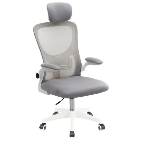 Кресло CROMEX (КРОМЕКС) "Dynamic CH-699", откидные подлокотники, пластик белый, сетка/ткань TW, серое, 533070