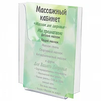 Подставка настенная для рекламных материалов МАЛОГО ФОРМАТА (155х210х30 мм), А5, оргстекло, BRAUBERG, 290433